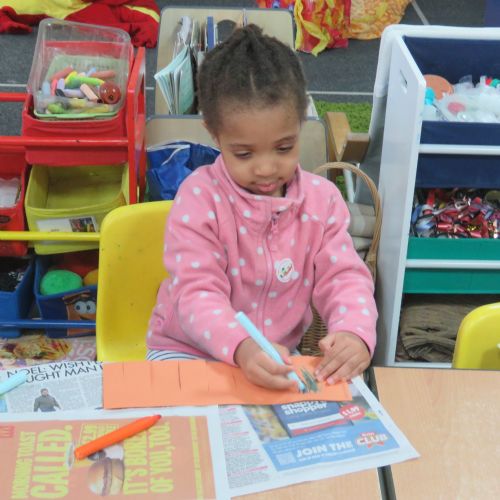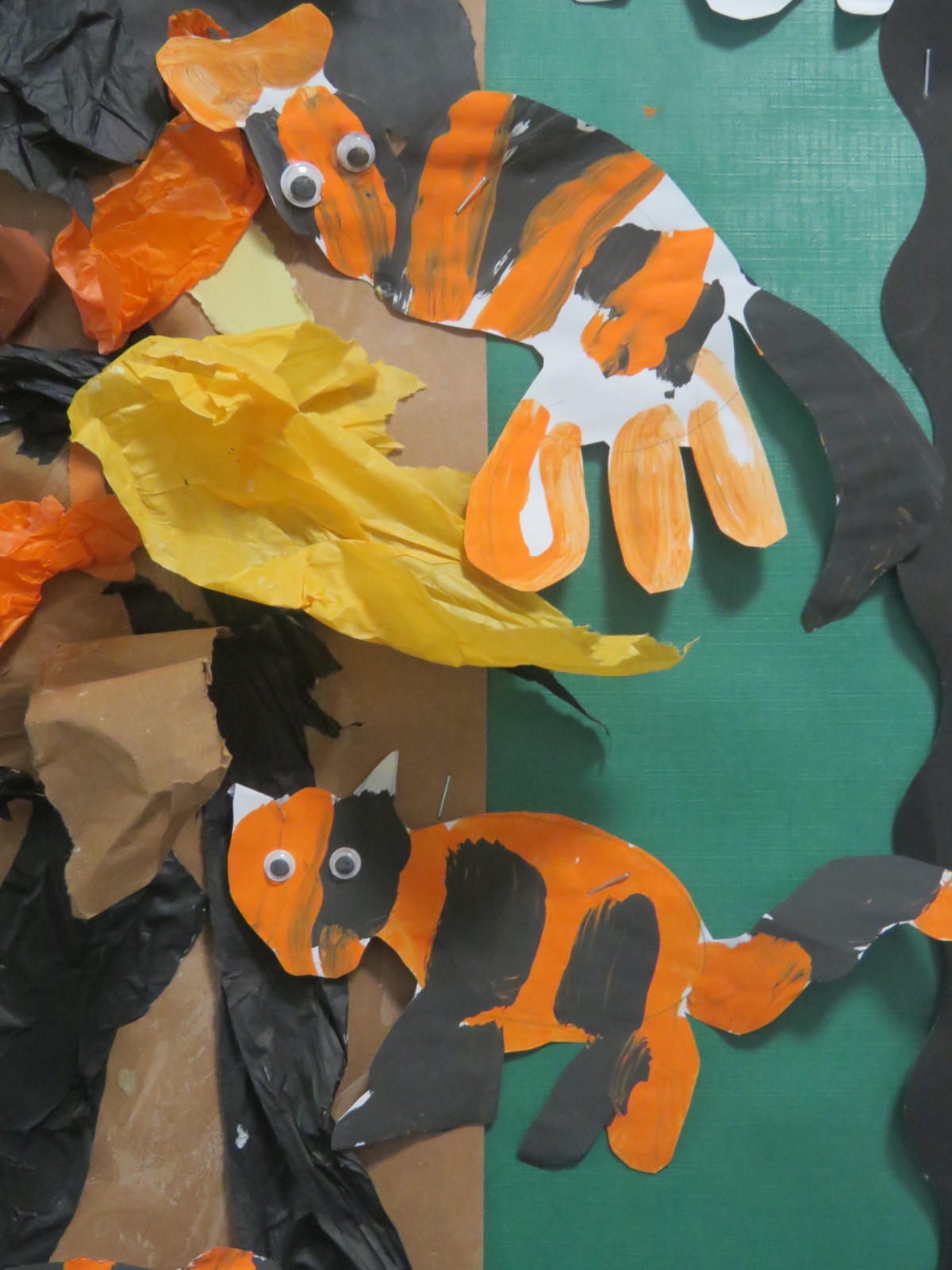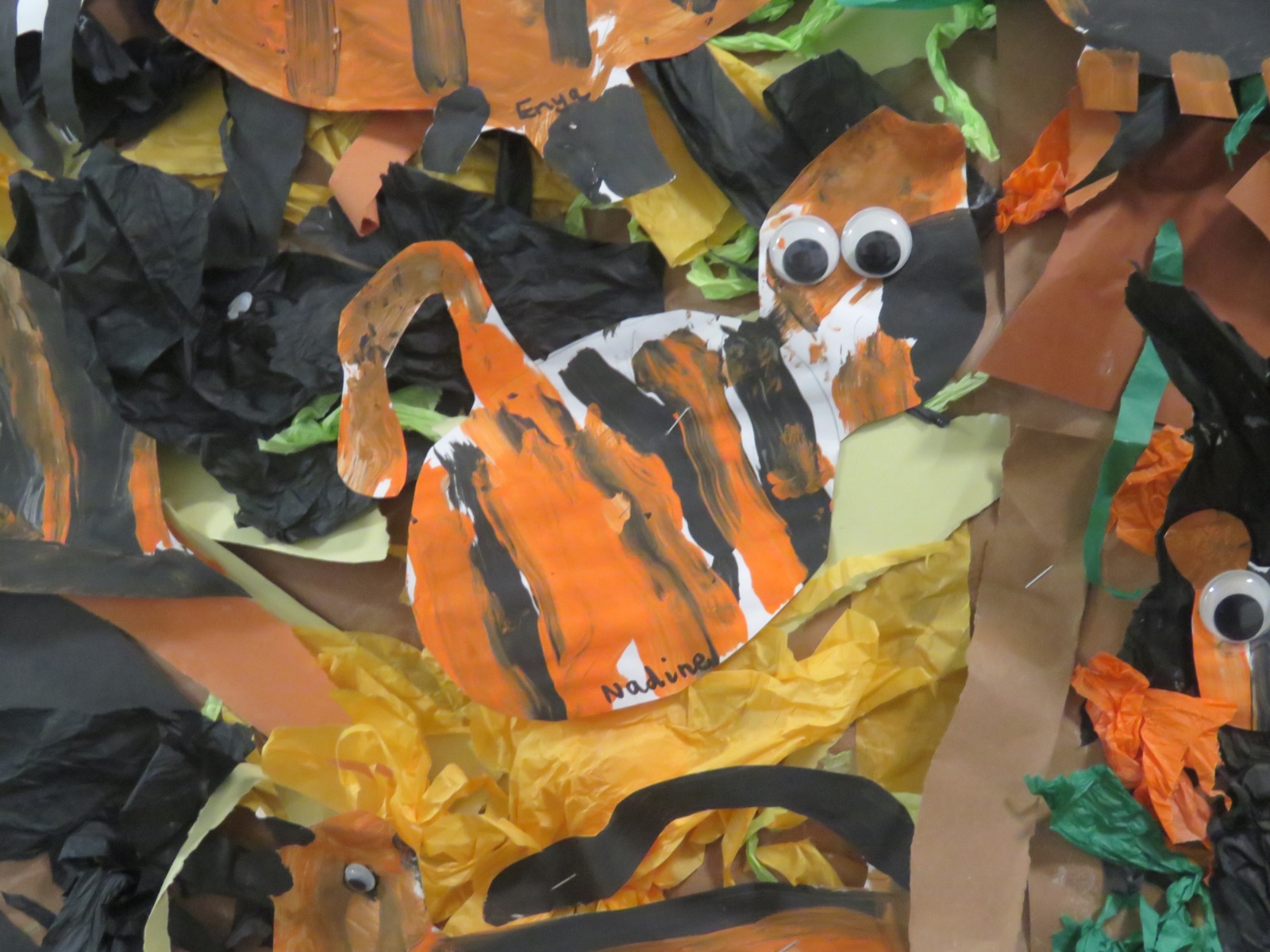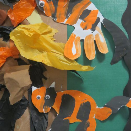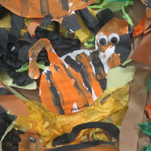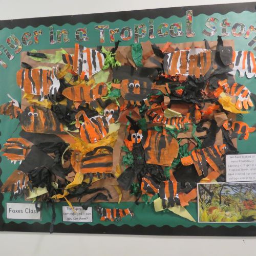 Foxes Class has looked at Henri Rousseau's painting of 'Tiger in a Tropical Storm'. Foxes children painted and created their own version of the painting.