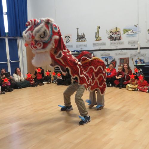 Nursery and Reception celebrated Lunar New Year by trying Chinese Foods, making lanterns, creating music and creating Chinese Writing and even watched a real Chinese Dragon dance.
