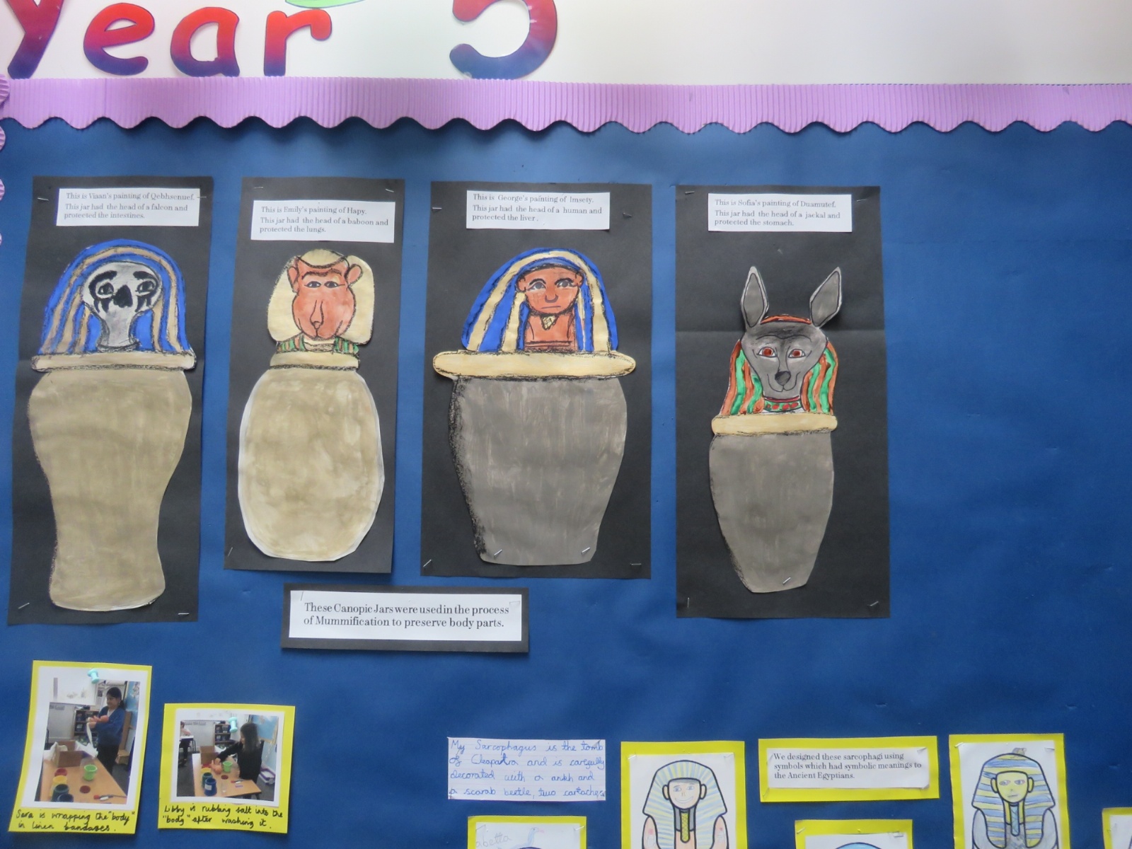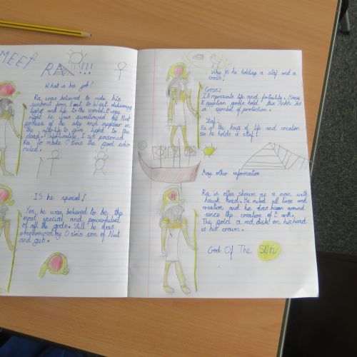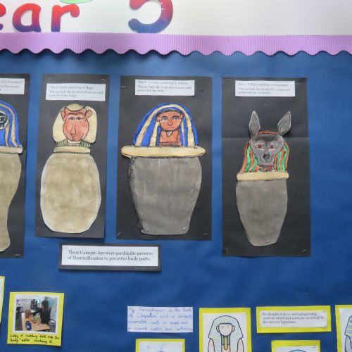 Year 5 have loved their Ancient Egypt topic. We have been fully immersed in all things Ancient Egypt from mummifications to Egyptian Gods to life by the River Nile. During Guided Reading, we have been reading the Secrets of a Sun King and making cross-curricular links with our knowledge of Tutankhamun and Howard Carter, which we then applied when writing newspaper articles. The class assemblies have shown the children's enthusiasm towards the topic and allowed them to share their knowledge with parents and peers.